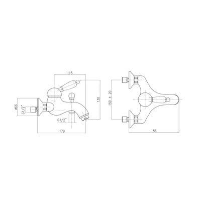 Ova zidna slavina za kadu od mesinga ima upravljačku polugu i presostat za kadu/tuš. Budući da se isporučuje bez pribora, potrebno je kupiti ručni tuš i crijevo za tuš. Razmak dovoda vode je 150 mm.