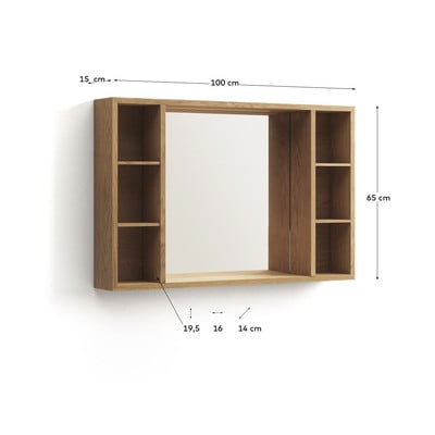 Zidni/s ogledalom, od masivne tikovine, završna obrada: lak, u prirodnoj boji, širina 100 cm, visina 65 cm, dubina 15 cm