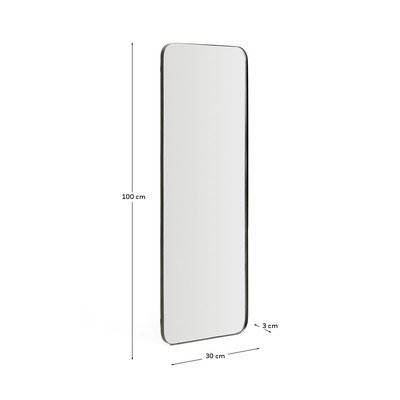 Zidno ogledalo Marco brenda Kave Home može se pohvaliti minimalističkim dizajnom i čistim linijama. Njegov tanki metalni okvir daje ogledalu čvrstoću i elegantan izgled, dok zaobljeni kutovi omekšavaju cjelokupni dojam. Zahvaljujući bezvremenskom izgledu, lako će se integrirati u svaki interijer, bilo da ga postavite u spavaću sobu, hodnik ili garderobu. Njegov pravokutni i vertikalni format pomaže vizualno povećati prostor i dodati mu svjetlost, čineći ga ne samo funkcionalnim već i dekorativnim elementom. Montaža je sigurna i praktična zahvaljujući kukama na stražnjoj strani, koje osiguravaju stabilno vješanje na zid.