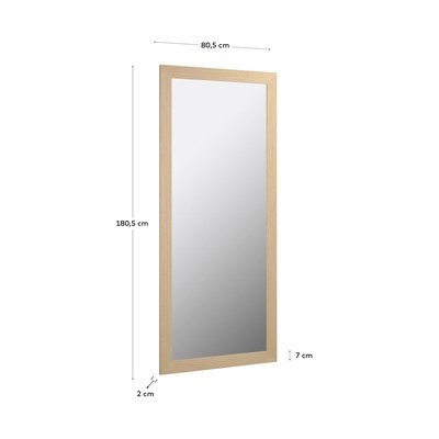 Zidno ogledalo Yvaine brenda Kave Home može se pohvaliti jednostavnim i bezvremenskim dizajnom. Okvir od drvenog furnira daje mu prirodan izgled i osigurava da će se uklopiti u svaki interijer. Zahvaljujući svojoj izdržljivosti i svestranosti, bit će odličan dodatak hodniku, dnevnom boravku ili spavaćoj sobi, gdje će uljepšati prostor i optički ga povećati.