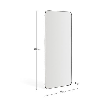 Zidno ogledalo Marco brenda Kave Home može se pohvaliti minimalističkim dizajnom i čistim linijama. Njegov tanki metalni okvir daje ogledalu čvrstoću i elegantan izgled, dok zaobljeni kutovi omekšavaju cjelokupni dojam. Zahvaljujući bezvremenskom izgledu, lako će se integrirati u svaki interijer, bilo da ga postavite u spavaću sobu, hodnik ili garderobu. Njegov pravokutni i vertikalni format pomaže vizualno povećati prostor i dodati mu svjetlost, čineći ga ne samo funkcionalnim već i dekorativnim elementom. Montaža je sigurna i praktična zahvaljujući kukama na stražnjoj strani, koje osiguravaju stabilno vješanje na zid.