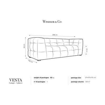 Sofa VestaBaršunasti, žuta , vodootporna, s 2 mjesta, širina 208 cm