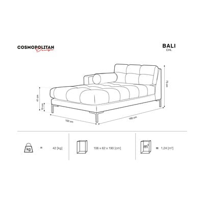Poželite li se ponekad zamotati u deku i samo ležati cijeli dan? Lenoška Bali je tu za vas! Njegova bež površina izrađena je od elegantne teksturirane tkanine. Vlakna su izrađena od 100% poliestera. Zahvaljujući njima, ležaljka je robusna, a istovremeno mekana i ugodna na dodir. U paketu ćete pronaći i jedan ukrasni jastuk dimenzija 54 x 17 x 17 cm u istoj boji, koji će ležaljku učiniti još ugodnijom. Doživite udobnost uz Cosmopolitan Design: